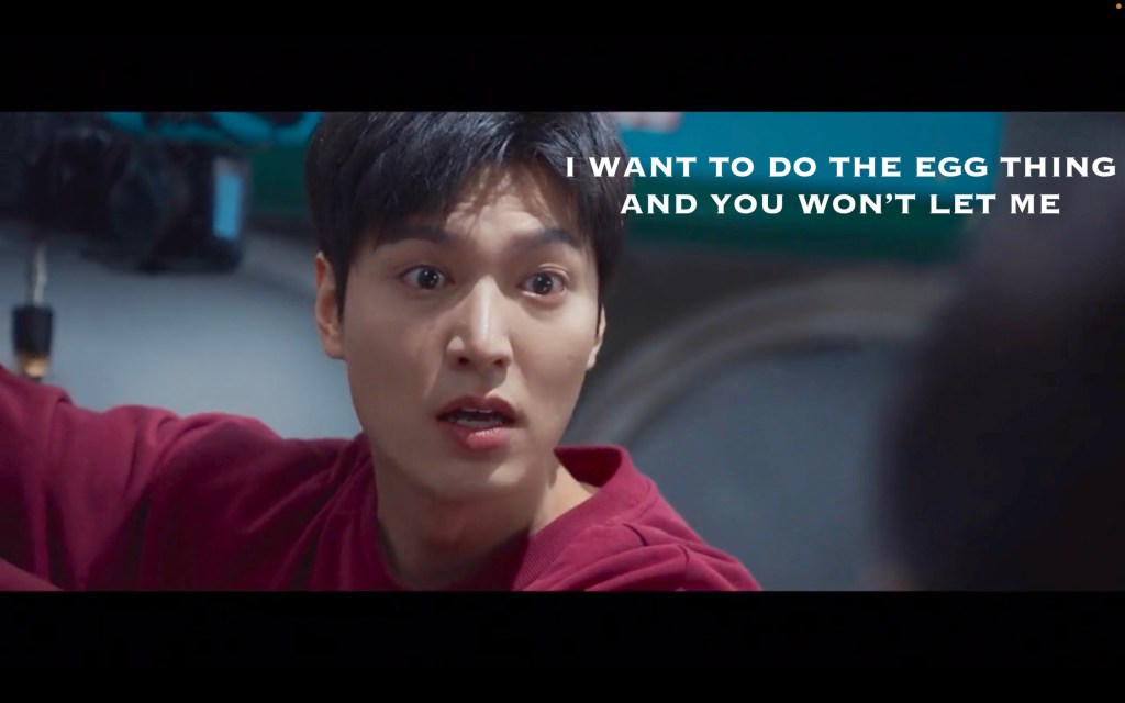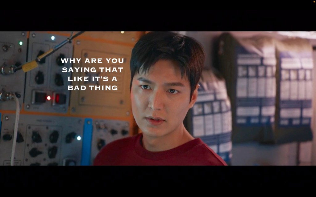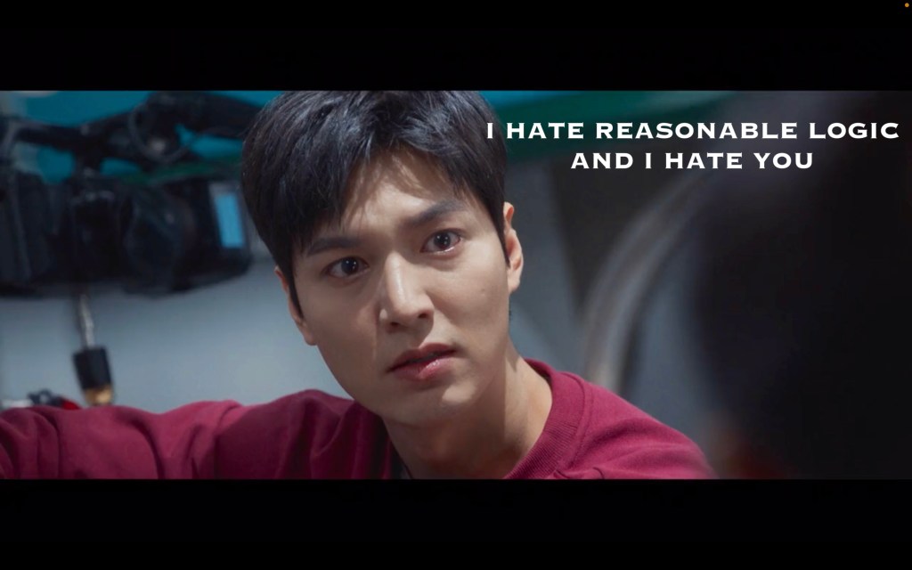 This is our leading man??? Not even the charms of Lee Minho can save this disaster of a romance. Even if she DID have feelings for him before this, she shouldn’t after. This is, to use a trendy buzz term, a giant red flag. At this point in the show I don’t want them together, and knowing that they’ll probably end up that way is pissing me off.