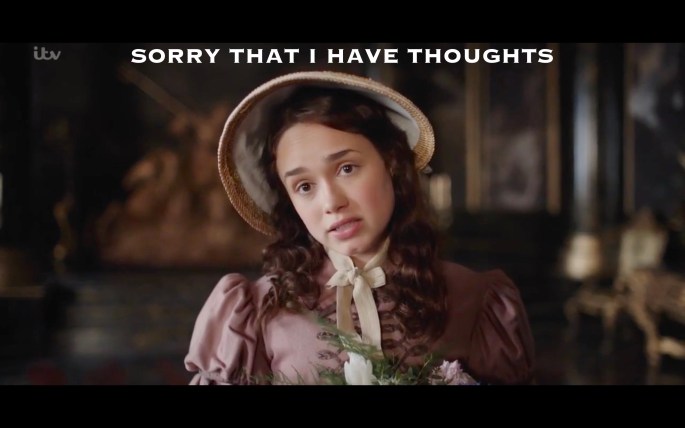 There is a stubbornness about Austen fans that never can bear to be frightened at the will of TV networks. Our courage always rises at every attempt to cancel our favourite shows. And boy howdy did that ever work!! Our beloved Sanditon is back for not one, but two seasons, looking to right some wrongs, … Continue reading Sanditon 2.1 Photo-Recap: Sass and Boobery